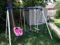 I finally got Ramona’s swing put together! I am not mechanically gifted but fortunately I was able to piece this set together in three hours. I was equally amazed and relieved. Projects like this don’t usually go so smooth for me. Ram seems pleased with my efforts and her smile is all the thanks I need.