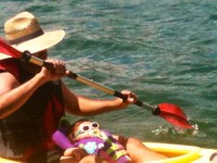 It is hard for me to explain the awesome that is watching your daughter experience things for the first time. Parents already know this and I am guessing this is high on the pro column when deciding to have another child. Her eyes grow big with excitement and anticipation. The smile stretches across her little face. The squeal of pure joy rings out. It is just real and wonderful. We had a couple of these moments this weekend. We got Ram all lathered in sun block and ready for the water. First she got in with Kelly and then we had her in a little float. She was a little freaked out but she started to get into it. A lake seems massive to me so I can understand where she was coming from. Then the real fun, Ram’s first ride in a kayak. I have been waiting for this day to come. That little girl just laid back and enjoyed the ride grinning the whole time. It was awesome.