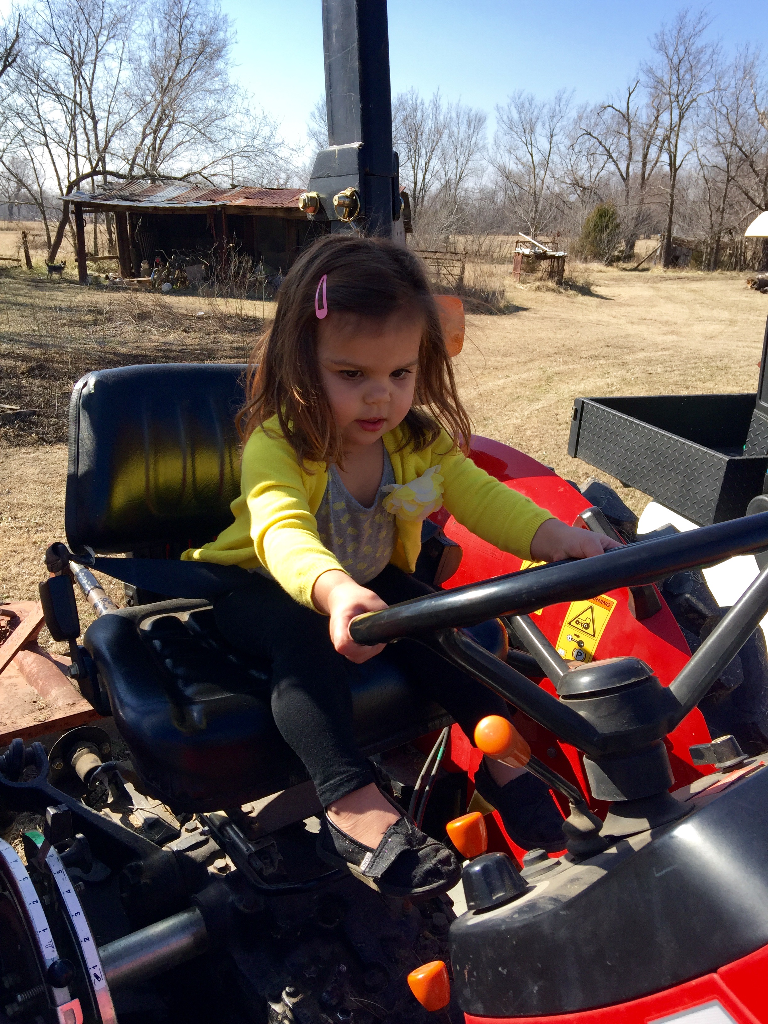 Ramona and I have been going out to my grandparent’s the last couple of weeks. Between Ramona and Hans I am not sure who likes being in the country more. Ramona has been watching me on the tractor and the golf cart. She showed me what she has learned and well she can make the cart go and she works hard trying to get the tractor into gear! It is amazing how absorbent and capable the human mind is. I just love watching her grow.