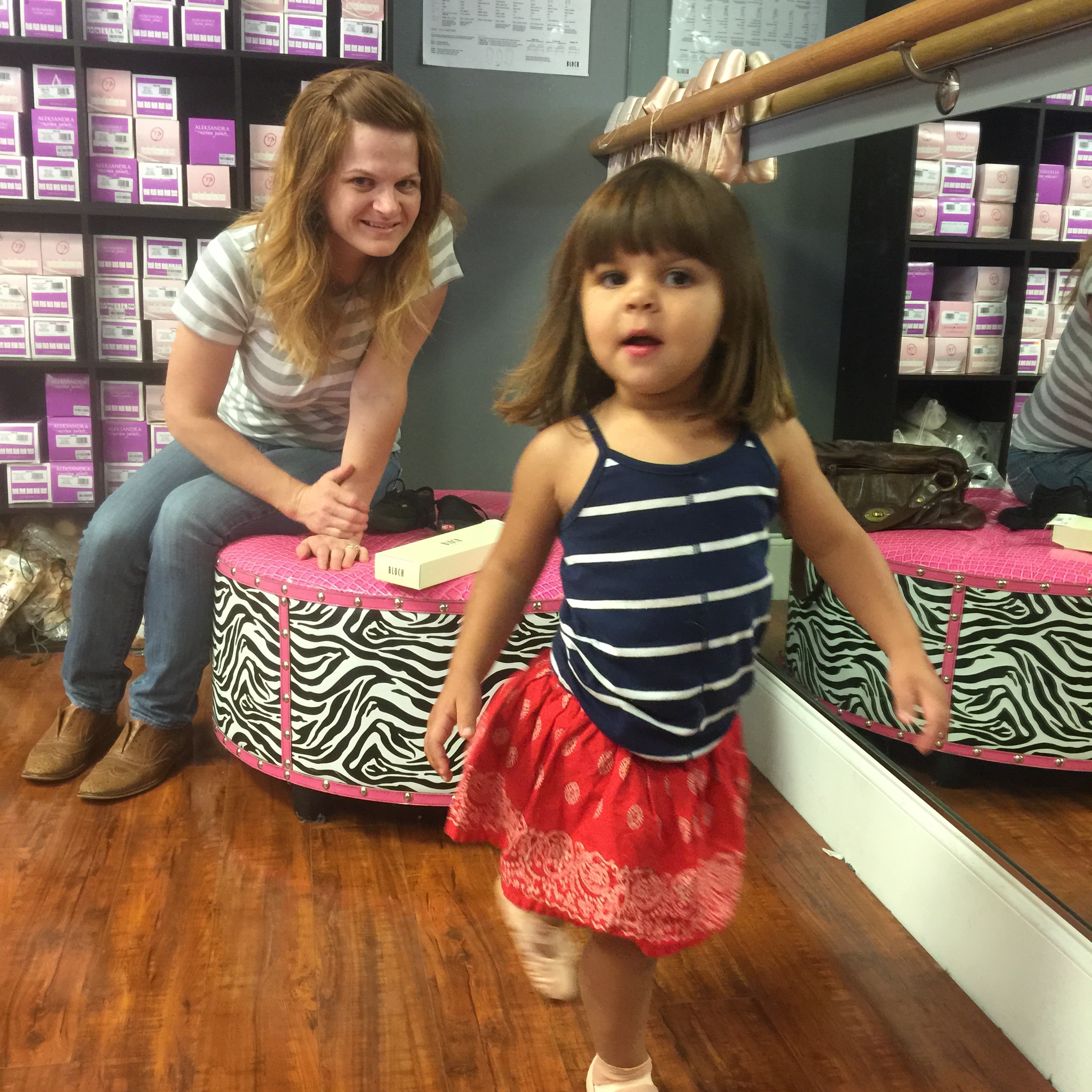 Monday Funday! We love Monday, we love family day. Today we are on the hunt for some ballet shoes? Slippers? I’m not up to speed on the dance jargon. Ram starts ballet class tomorrow or as she puts it, “tomorrow I become a ballerina!”